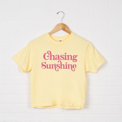 Product Name: Simply Sage Market Women's Retro Forever Chasing Sunsets Short Sleeve Relaxed Fit Cropped Graphic Tee - S - Butter
