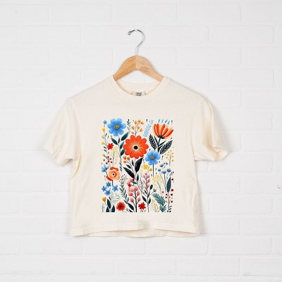 Product Name: Simply Sage Market Women's Rustic Flowers Short Sleeve Garment Dyed Tee - L - Ivory