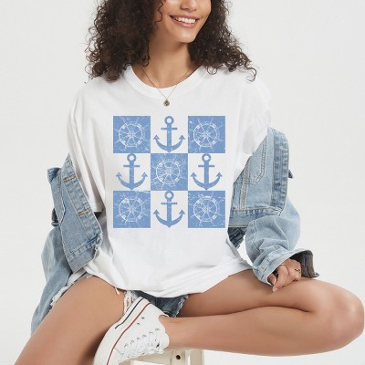 Product Name: Simply Sage Market Women's Seaside Anchor Short Sleeve Garment Dyed Tee - S - White