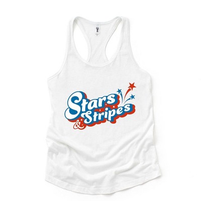 Product Name: Simply Sage Market Women's Stars and Stripes Retro Short Sleeve Racerback Tank - L - White