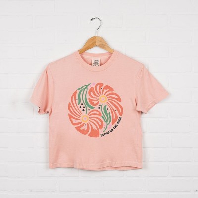 Product Name: Simply Sage Market Women's Sunset Palm Trees Short Sleeve Relaxed Fit Cropped Tee - M - Peachy