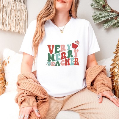 Celebrate the holiday season with this fun and festive 'Teacher Christmas Lights' design. The design features colorful Christmas lights in the shape of bulb lights, perfect for any teacher or educator. This unique and playful design is the perfect way to show your appreciation for the teachers in your life during the holidays. Spread some holiday cheer with this cute and quirky print-on-demand design that is sure to bring a smile to any teacher's face. Get yours today and make this holiday season extra special! Introducing our Adult Fit Short Sleeve Tee, crafted from soft, high-quality materials for a comfortable fit. Featuring a trendy graphic design, this tee is perfect for adding a stylish touch to any outfit.