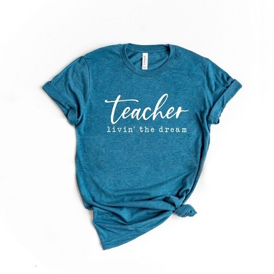 Product Name: Simply Sage Market Women's Teacher Vibes Cursive Apple Short Sleeve Graphic Tee - M - Ocean Blue