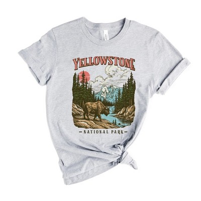 Capture the spirit of the American wilderness with this Yellowstone National Park Badge design. Show off your love for outdoor adventures and iconic national parks with this vintage style badge featuring the majestic landscapes and wildlife of Yellowstone. Whether you're a seasoned explorer or dreaming of your next trip, this design is a perfect way to commemorate your experiences in one of the most famous national parks in the USA. Bring a piece of Yellowstone's beauty and wonder into your everyday life with this unique print on demand design. Introducing our Unisex Short Sleeve Tee, crafted from soft, high-quality materials for a comfortable fit. Featuring a trendy graphic design, this tee is perfect for adding a stylish touch to any outfit.