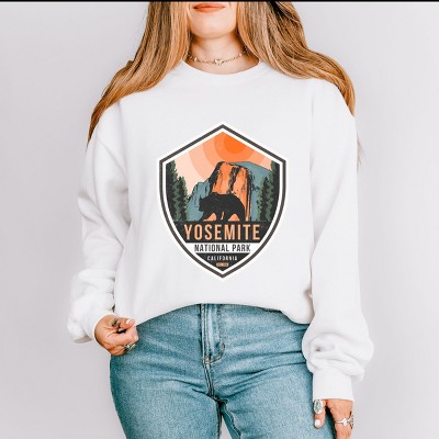 Capture the stunning beauty of Yosemite National Park in the Sierra Nevada mountain range with this breathtaking design. The majestic peaks, lush forests, and cascading waterfalls of Yosemite are showcased in vibrant colors, making it the perfect print for nature lovers and outdoor enthusiasts. Bring a piece of this iconic national park into your home or wardrobe with this captivating design. Whether you've visited Yosemite before or dream of exploring its wonders, this design is sure to inspire a sense of awe and appreciation for the natural world. Stay cozy and stylish in this unisex fit, soft and comfortable sweatshirt. Featuring a high-quality graphic design, this trendy piece is perfect for any casual occasion. Size up for an oversized look.