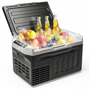 Simzlife 22/32 Qt Car Refrigerator, 12/24V AC DC, Portable Fridge, Fast Cooling & Enery Saving,-7℉~77℉, Quiet, ETL, for RV/Camping/Dorm/Party, Black