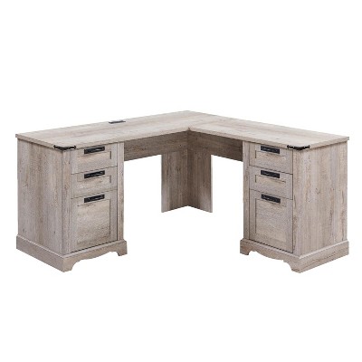 SinCiDo 58" Desk,Modern Grooved Computer Writing Desk,w/ 5 Drawers and 1 Adjustable Storage Cabinet,Desk for Study and Bedroom,Natural Oak