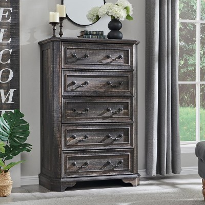 SinCiDo Farmhouse Dresser with 6 Drawer, 58" Wide Vertical Dresser, Drawers Organizer Closet, 2 Different Drawer Sizes for Living Room, Dark Gray