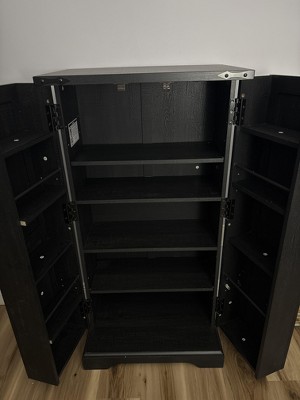 I saw a bunch of ideas on pinterest about doing a chalkboard coffee bar It was easy to put together, the doors opens very nicely and it's beautiful! I love it so much!