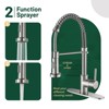 Simply press the button on the spout to switch between the two spray modes (stream/spray). Elevate your kitchen with the high arc design, breaking through spatial limitations to effortlessly clean even the bulkiest pots and pans in deep sinks. The spring is flexible and pulls the spout down somewhat.