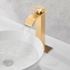 The waterfall spout provides a clear and steady laminar stream and creates a unique look for your bathroom. Inspired by pure geometric style, this faucet has a minimalist yet stylish look. The faucet has a height of 11.41 inches for vessel bathroom sinks. A single lever handle allows for easy adjustment of water temperature and starting/stopping the flow of water. Controlling water volume and temperature with just one handle is easy for everyone to use.