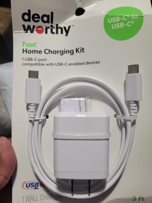 Single Port 20W USB-C Home Charger with 3' USB-C to USB-C Cable - dealworthy™ White: Wall Adapter & Cable