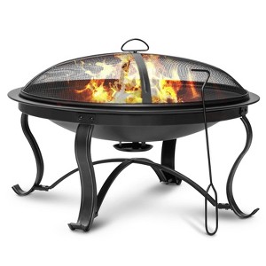SINGLYFIRE 30" Fire Pit Outdoor Burning Fire Bowl with Ash Plate, Spark Screen, Log Grate, Poker