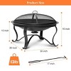 Installation Instructions Experience outdoor warmth and cooking versatility with our 30-inch Fire Pit. This multifunctional piece accommodates gatherings of 3-5 people, serving as both a fire pit and BBQ grill. Its sturdy steel construction ensures durability and rust resistance. Cleaning is hassle-free with water drainage holes and a removable ash plate. Safety features include a spark screen and fire poker for secure handling. Perfect for various outdoor occasions, from backyard parties to camping adventures.