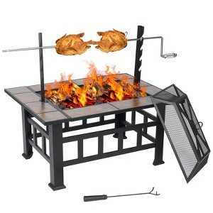 SINGLYFIRE 37" Large Fire Pit with Ceramic Table & BBQ Grill Burning Fire Bowl for Backyard Garden