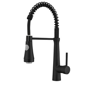 Black kitchen sink faucet with pull-out sprayer, hands-on control for everyday kitchen tasks.