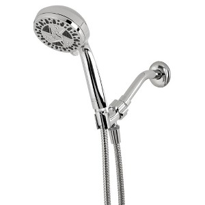 The Waxman SpaMassage 6-Spray Handheld Shower Head in Chrome offers six powerful spray settings, including a unique spray that features three rotating water pulses for targeted massage action. SpaMassage also delivers complete water coverage with a 4.25" shower head. The 60" no-kink metal hose is great for reach and accessibility. No tools are required for installation. This shower head meets WaterSense specification and comes with a limited lifetime warranty.