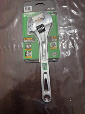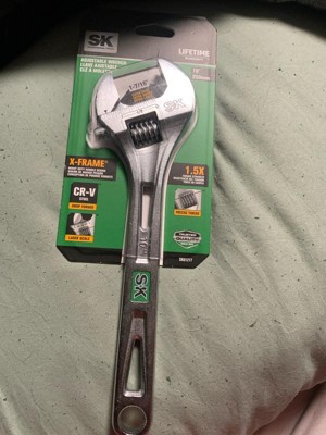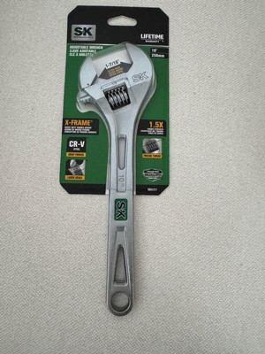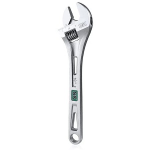 - ANTI-CORROSION: The SK 10Inches Adjustable Wrench is made of heat treated Chrome Vanadium Steel with a chrome plating surface to ensure durability and resistance to corrosion. The high-polish chrome plated finish lets you easily wipe away gunk and grease.
