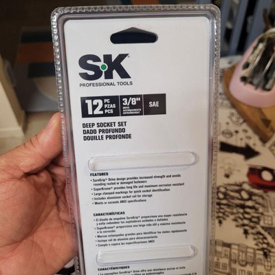 SK Hand Tools SK01346 12 Piece SAE 3/8Inches Drive Set Deep Socket Set