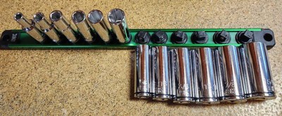 - BONUS STORAGE: Our socket set includes a green magnetic aluminum socket rail for easy storage in your toolkit or garage.