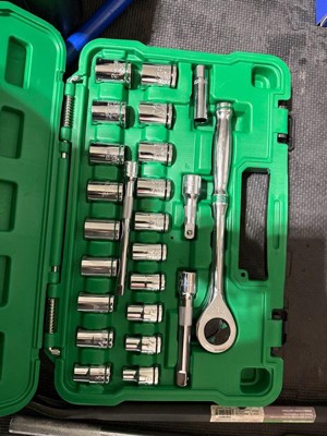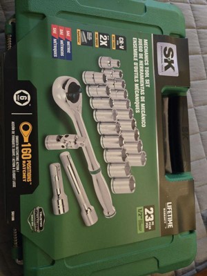 [This review was collected as part of a promotion.] I received this SK23 piece 1/2 inch drive mechanics professional tool set to try out for free from @influenster and @sktools for free in exchange for my honest review. This is a very nice mechanics drive set. It has a 160 positions ratchet, with smooth racheting action. It is cr-v steel drop forged and up to 2x ansi torque. This also includes your standard sockets along with a 3" & 5" extension bars and 1/2" drive Universal joint. It is corrosion and rust proof and comes in a nice carrying case. I highly recommend this product if you need a new mechanics tool set .