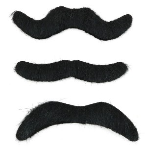 Skeleteen Self Adhesive Party Mustaches Halloween Costume Accessory - Hairy Fake Black Sticker Mustache - 3 Piece Set