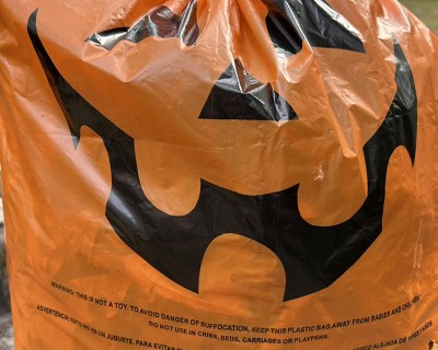 - The garbage bags include 3 black twist ties for secure closure and are printed with pumpkin faces.