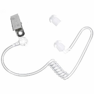 - These earpieces have an earbud and a clear stretch coil and clip to clip into the back of the shirt.