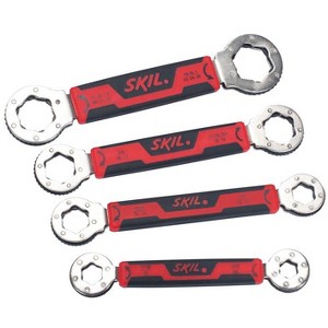 It is a self-adjusting tool that helps loosen rusted, rounded or painted-over bolts. This universal wrench set has a patented 60 hardened steel teeth grip as you turn. This allows the damaged item to be removed with ease. This Skil 4-piece secure grip box wrench set will work on SAE, metric, star, torx and square shapes.