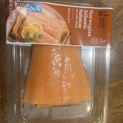 For a delicious twist on basic salmon recipes without any extra hassle, try this Skin-On Salmon Portion with Cedar Plank from Good & Gather™. This skin-on Atlantic salmon comes ready to grill on a cedar plank, which will add a touch of smoky flavor to the fish. Great for pairing with grilled veggies and rice or potatoes, this cedar plank salmon is great for busy weeknights.