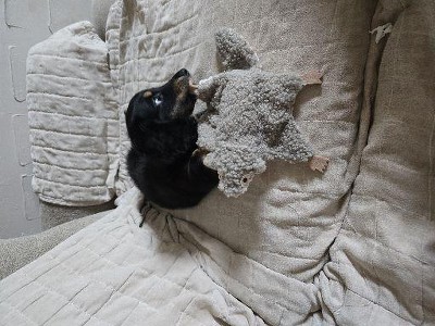 Both my dogs’ favorite toy: one is a Corgi and one is a Golden. I will say the Golden was able to destroy it a little too easily so this would be better for dogs that aren’t heavy chewers (I have had Goldens in the past that don’t destroy things like this one does.) This toy is SO CUTE, the price is great, and they love both the crinkle and the squeaker, not to mention the little legs to grab onto. When it’s destroyed, I go and buy another one.