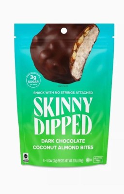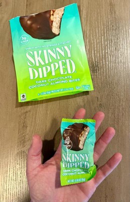- EASY SNACKING: Each 3.17oz Bag of SkinnyDipped Coconut Almond Bites contains (6) individually wrapped coconut bites.