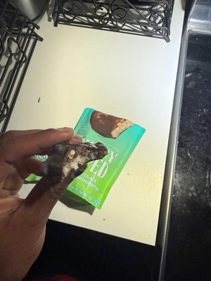 [This review was collected as part of a promotion.] I liked this. It’s a guilt free sweet treat. It’s nice and chewy. It’s dark chocolate so it’s not super sweet! It doesn’t melt extremely fast and you can read all the ingredients on the back.