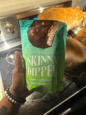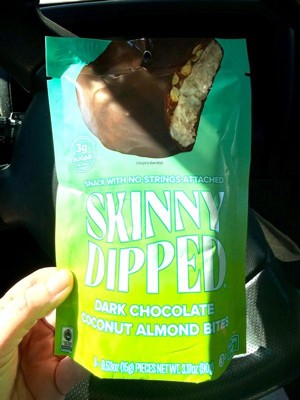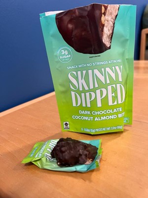 [This review was collected as part of a promotion.] absolutely loved these SkinnyDipped dark chocolate coconut almond bites. The dark chocolate is rich and smooth without being too sweet, and the coconut adds the perfect amount of flavor and texture. The almonds give a nice crunch that makes each bite really satisfying. They feel like a treat but still lighter than most chocolate snacks, which I really appreciate. I also like that the ingredients feel simple and high quality. I received these from Influenster, and I would definitely buy them again and recommend them to anyone looking for a delicious chocolate snack.