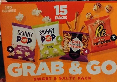 - Get the Sweet & Salty Variety Multipack and enjoy: 4- 0.5oz bags SkinnyPop Original and 4- 0.8oz bags Skinnypop Kettle Corn, 4 - 1oz bags Dot's Cinnamon Sugar, and 3- 0.8oz bags Reese's Popcorn