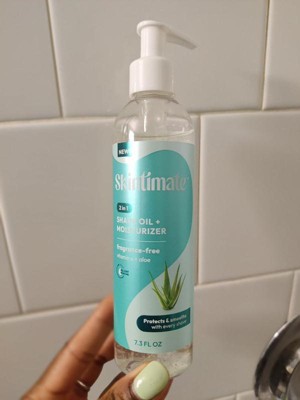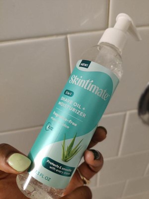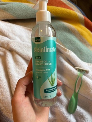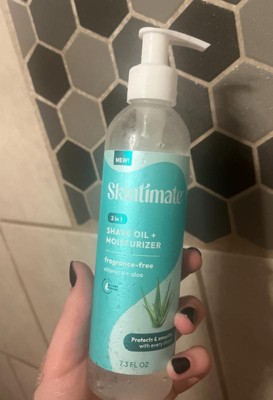 Skintimate 2-in-1 Shave Oil & Moisturizer is a hydrating shave oil that DOUBLES as a post-shave moisturizer. This fragrance free womens shave oil is a perfect self-care treat formulated for sensitive skin. It feels luxurious; made with ALOE, VITAMIN E & SHEA oil that provides a smooth glide for a close and comfortable shave to reveal your beautiful glowing skin.