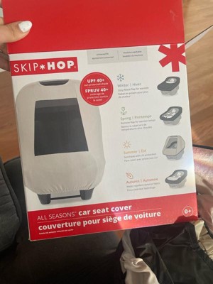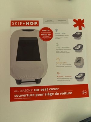 [This review was collected as part of a promotion.] The Skip Hop All-Season Car Seat Cover is easy to install and fits snugly over a car seat. It features a water-resistant outer layer for rain and a soft inner layer for warmth. The dual-layer design allows the front flap to be unzipped for better airflow in warm weather. The peek-a-boo window is convenient for checking on the baby without removing the cover. It also comes in various stylish colors. Overall, it's a great choice for protecting a baby from the elements, being user-friendly, and looking good. Highly recommended!