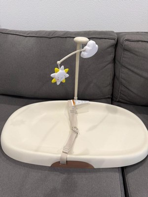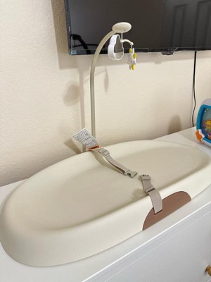 [This review was collected as part of a promotion.] We are big fans of this changing pad. It's firm but not too hard that we feel baby would be uncomfortable. She finally sees the mobile, but I do wish it was a little more exciting. The best part is that it wipes down so easily, and there is no need to change covers!