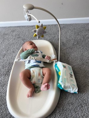 [This review was collected as part of a promotion.] Love this product and so does our baby boy. It is very easy to clean, the hanging toy is a great distraction and he seems comfortable in it. We have been using it for a month now and love it!
