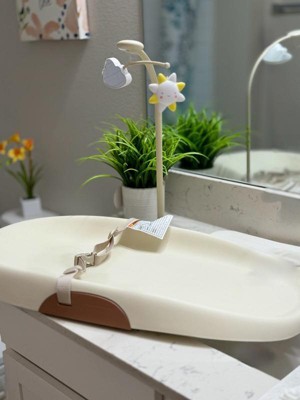 [This review was collected as part of a promotion.] I had added this to my registry and was so happy that I got a chance to review this. It’s definitely worth the hype on social media. It’s slip resistant, so I haven’t felt any sliding when changing my baby’s diaper. It’s also very easy to clean any little accidents by just wiping it down, or you can add a liner. My baby has really enjoyed the little nursery up top too and just stares at it and randomly smiles during those messier diaper clean ups.