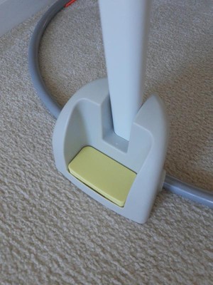 [This review was collected as part of a promotion.] We really like this jumper. It has 5 different toys that snap onto the tray to keep baby engaged, and a separate anchor point on the seat for teething toys. Baby likes most of the toys but we’re not a fan of the sun that plays music – it’s a bit loud and doesn’t do much else. The jumper platform is adjustable for different height children and the seat rotates around to the different stations. The springs are concealed to prevent pinching, and the arms & base are sturdy & secure. The jumper does fold up, but we view it as more of a long-term storage option than something that’s disassembled each day after use. Overall, it’s a great place to keep baby safe, entertained and engaged.