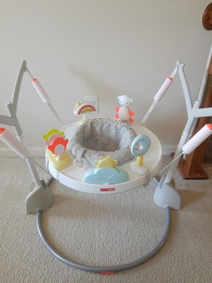 [This review was collected as part of a promotion.] I recently acquired the Silver Lining Cloud Play & Fold Jumper for my little one, and I can't express how much joy and excitement it has brought into our lives. Innovative Design: The Silver Lining Cloud Play & Fold Jumper has a creative design that keeps my baby engaged for hours. The playful cloud-themed activity center is not only adorable but also thoughtfully designed with various interactive elements. Educational Fun: This jumper encourages my baby's physical and mental development. It offers a range of toys and activities that help build fine motor skills and hand-eye coordination. It's not just play; it's learning in action! Sturdy and Safe: The construction of this jumper is solid and secure. I have complete peace of mind knowing my baby is safe while bouncing and playing. It's built to last, and the soft, padded seat keeps my little one comfortable. Easy to Store: One of the standout features is the "fold" in its name. The ability to fold and store the jumper when not in use is a huge space-saver. It's perfect for smaller living spaces. Adjustable Height: As my baby grows, the adjustable height feature ensures that this jumper remains a perfect fit. It accommodates babies of different sizes and stages of development. Portability: The jumper is easy to move around the house, so I can keep my baby close while I go about my daily activities. It's a lifesaver for busy parents. Adorable Aesthetics: The cloud-themed design and cheerful colors are visually appealing. It's a cute addition to our nursery and captures my baby's attention immediately. Overall, this Play & Fold Jumper is a cloud of fun that keeps my baby engaged and happy while aiding their development.