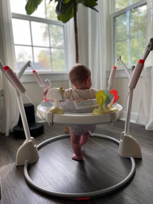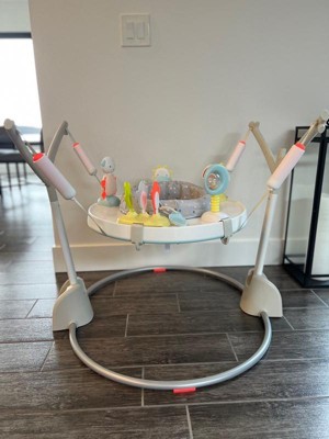 [This review was collected as part of a promotion.] This jumper is so beautiful and the design is perfect for smaller spaces. Baby’s things can take over the whole house sometimes but I’m so pleased at how easy it is to fold and put away and also how it has just the right amount of activities to play with. It’s beautiful and simple and my baby adores her play time in it.