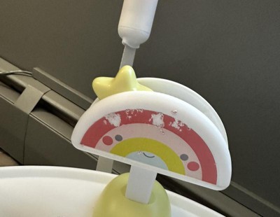 - Interactive clip-on toys: Encourage development and customize play with clip-on movable toys including a movable rainbow star, a moon spinner rattle, a bird clacker, and a jumping jack lamb. The included cloud teether toys can be attached to the seat.