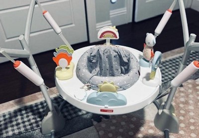 An action-packed playtime must-have for baby, our Silver Lining Cloud™ Play & Fold Jumper is filled with 20-plus developmental activities plus a 360-degree rotating seat so baby can sit, swivel and bounce for maximum exploration. A peekaboo sun rewards baby with colorful lights & fun music, while the clip-on, movable toys encourage development and allow for customized play. When playtime is finished, the baby jumper is easy to fold flat for storage (hide it under your couch!) and travel.