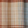 - Light-filtering, unlined woven with an amber, tan, and blue/grey plaid pattern
