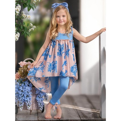 Sky Blue Linen Halter Top and Skirt Set Mia Belle Girls, Blue, 6-6X