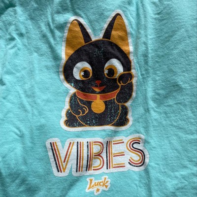 • CUSTOM DESIGN: Bob the black cat raises a paw and waves on this graphic tee while orange, red, and black letters below spell out Vibes. Fans of the Skydance Animation's Luck movie will love the fun design on this comfy t-shirt.