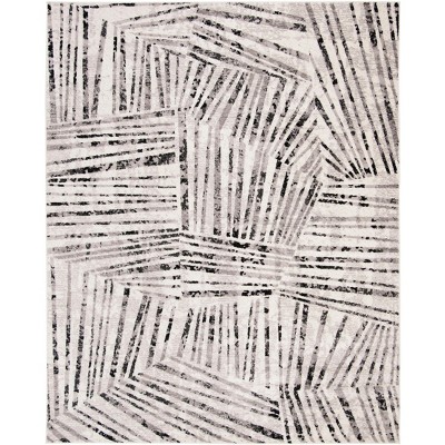 Adorned with a sophisticated grey and ivory color palette, the rug's pattern evokes a modern abstract aesthetic that captures the eye without overwhelming the room's decor. Ideal for contemporary and transitional interiors, this rug adds an understated elegance to any setting.