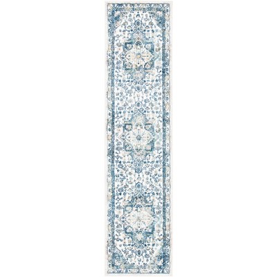 Elevate your living space with our contemporary style runner, meticulously crafted in Turkey and power loomed with precision to ensure a long-lasting design. Available in a sleek size of 2 feet 2 inches by 9 feet, this runner boasts a plush 5/8 inch height that promises a luxurious underfoot experience. The runner exudes a sophisticated ivory and navy color scheme that adds a touch of elegance to any corridor, entryway, or space in need of a slender decorative accent.